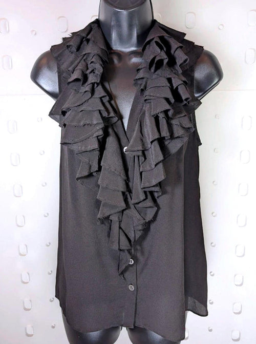Dae Ho Vintage Floral Equestrian Blouse – Black – Puff Sleeve – UK 10/12 -